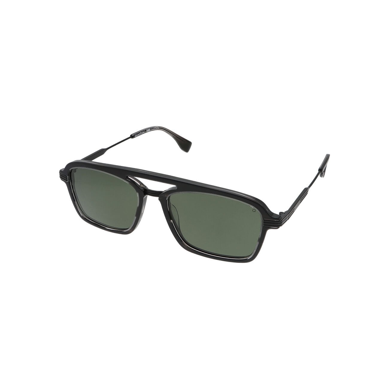Quantum Siyah Geometrik Çerçeve Erkek Güneş Gözlüğü | 55 mm Asetat Çerçeve, Yeşil Polarize Cam