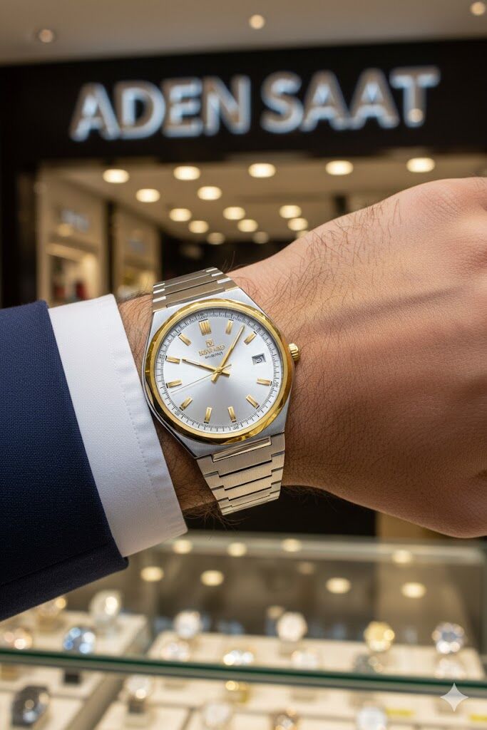 Gümüş ve altın tonlarının uyumuyla tasarlanan çelik kordon, bilekte dengeli ve konforlu bir kullanım sunar. Günlük ve klasik kombinlerle kusursuz uyum sağlar.