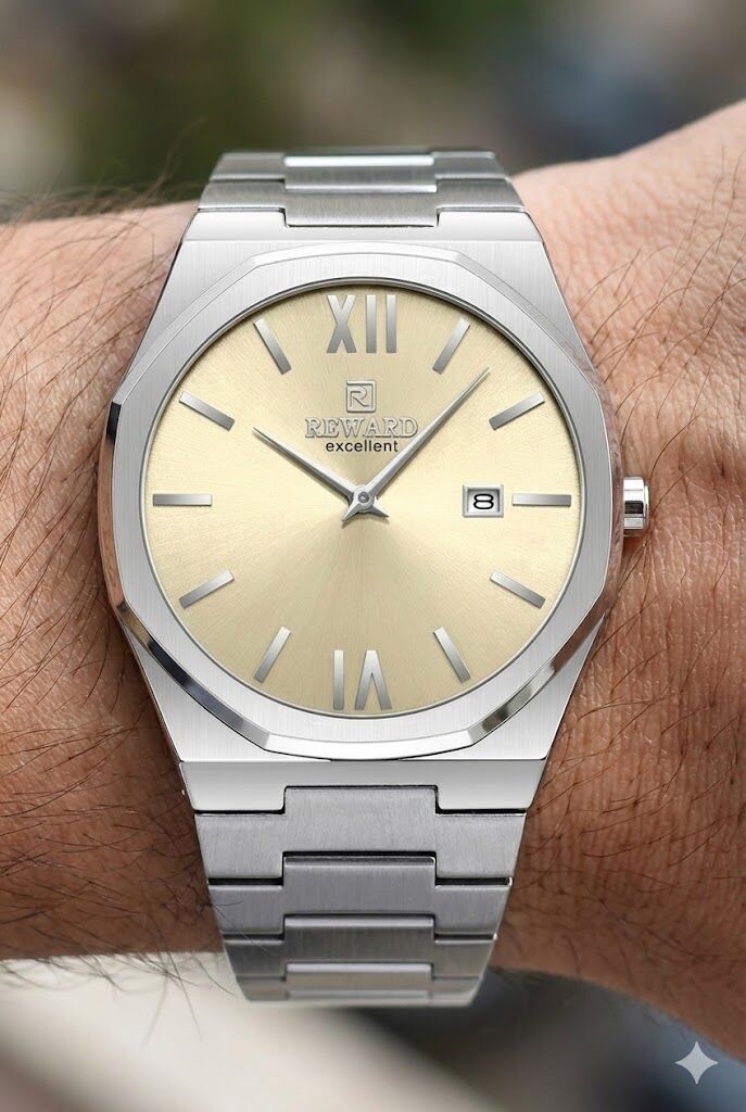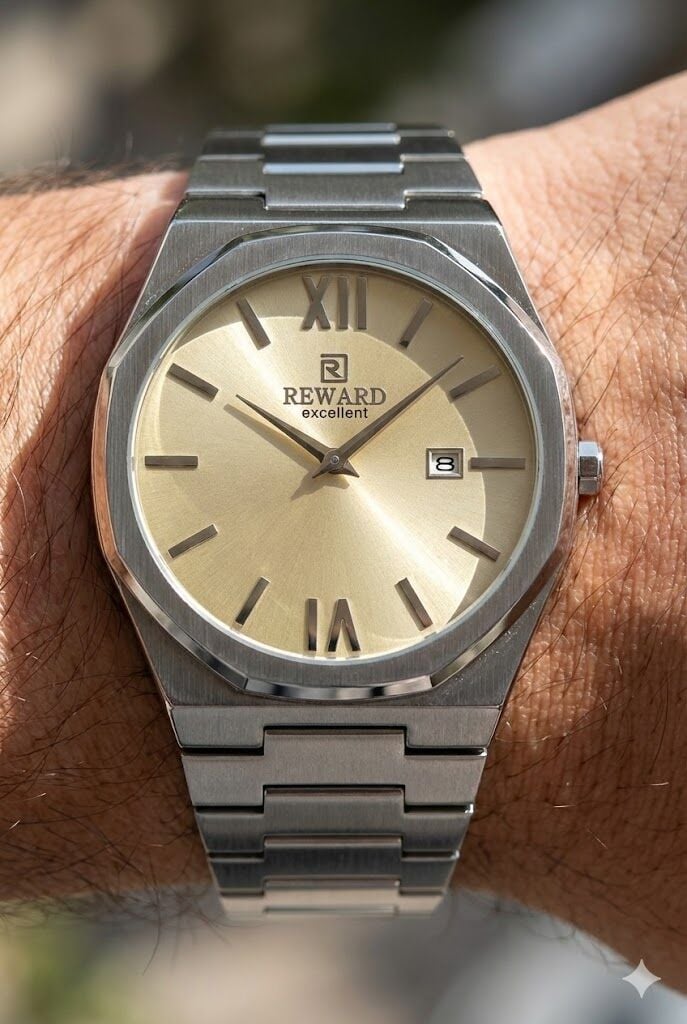 Reward Excellent Erkek Kol Saati | 42 mm Çelik Kasa, Gold Kadran, 5 ATM