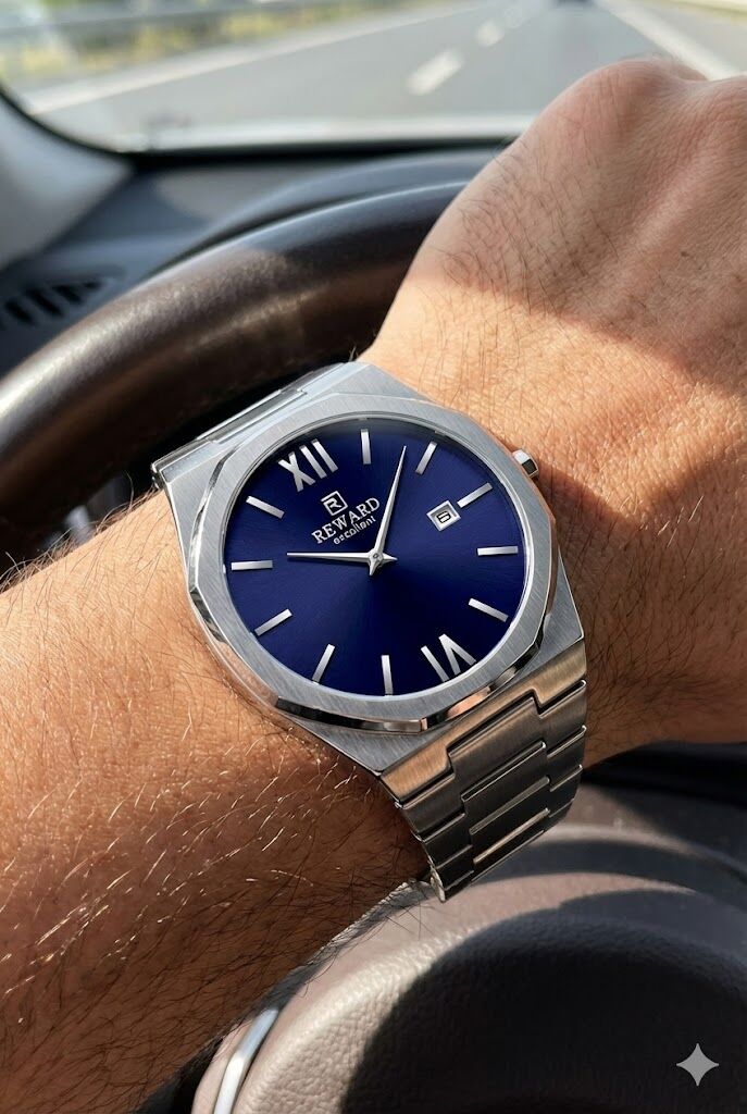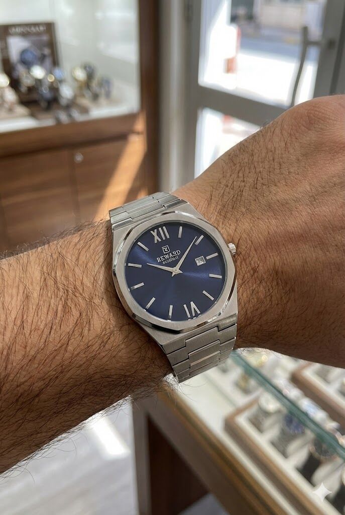 Reward Excellent A147343 erkek kol saati, lacivert tonlu kadranı ve köşeli modern kasa tasarımıyla güçlü ve şık bir duruş sunar. 42 mm kasa çapı sayesinde bilekte dengeli bir görünüm sağlar. Paslanmaz çelik kasa ve çelik bilezik yapısı uzun ömürlü ve konforlu kullanım sunarken, mineral cam yapısı günlük kullanıma uygun dayanıklılık sağlar. 5 ATM su geçirmezlik seviyesi sayesinde günlük su temaslarına karşı güvenle kullanılabilir.