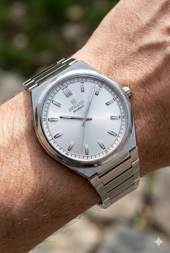 Reward erkek kol saati, modern çizgilere sahip güçlü kasa yapısı ve sade kadran tasarımıyla günlük ve klasik kullanım için ideal bir modeldir. Paslanmaz çelik kasa ve bilezik yapısı sayesinde uzun ömürlü kullanım sunarken, net ve dengeli tasarımıyla zamansız bir stil oluşturur.