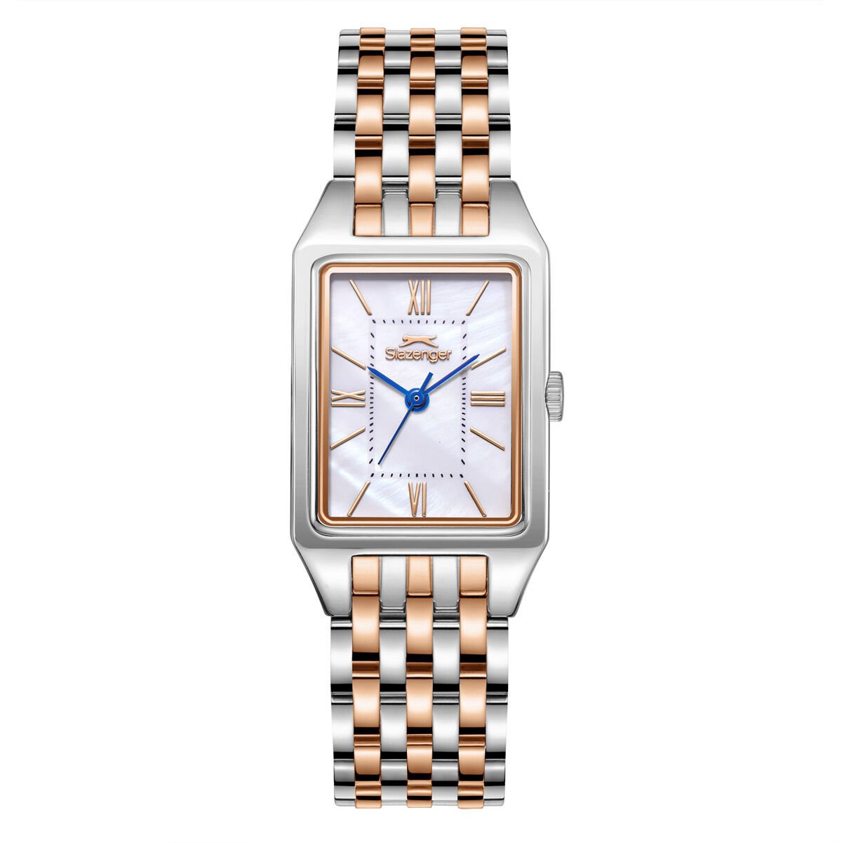 Slazenger 22mm Dikdörtgen Kasa Kadın Kol Saati | Gümüş & Rose Gold Renk Çelik Kordon, 5ATM