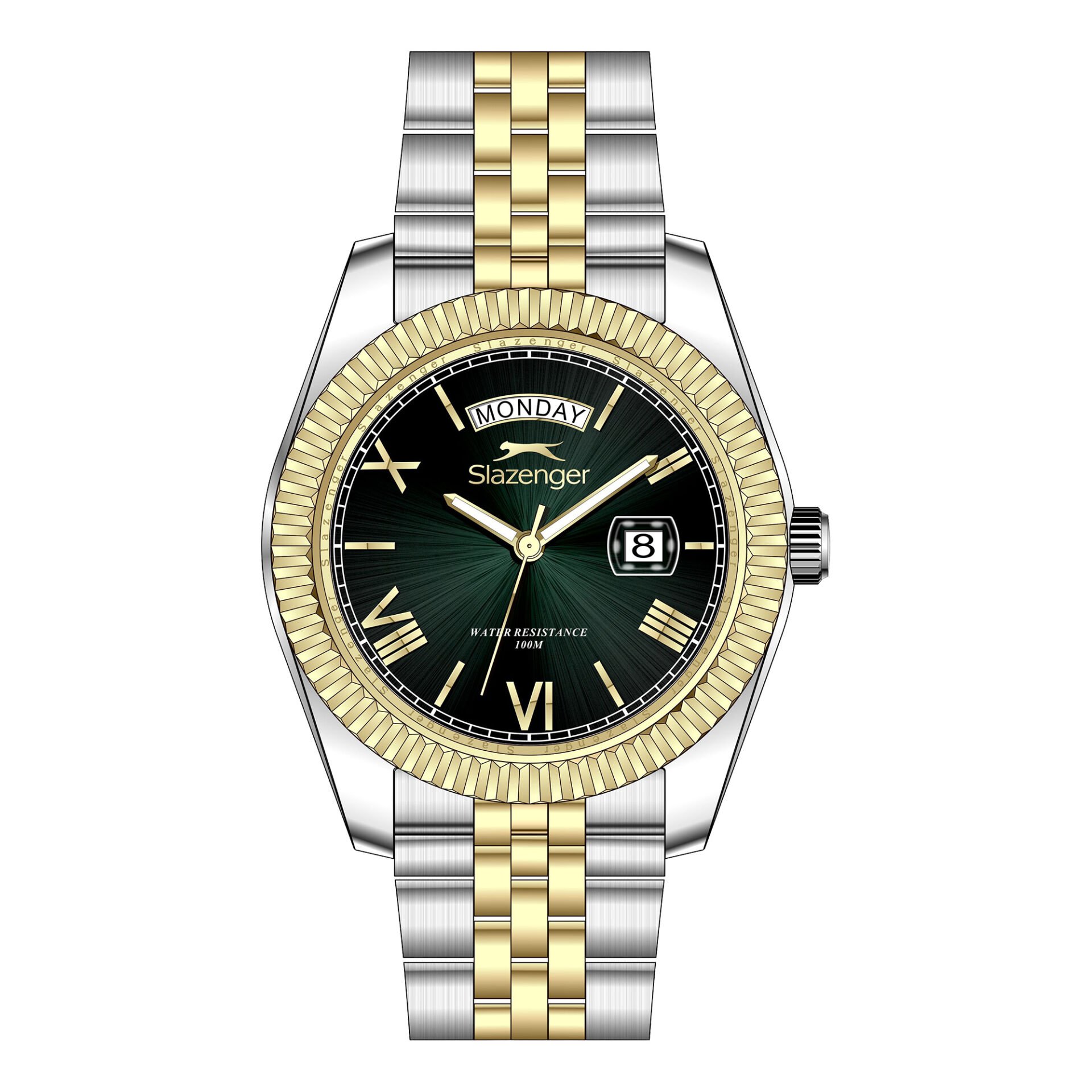 Slazenger 41mm, Day Date Tasarım Erkek Kol Saati | Paslanmaz Çelik Kordon, Mineral Cam, 10ATM