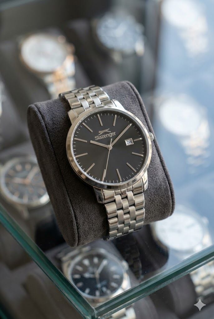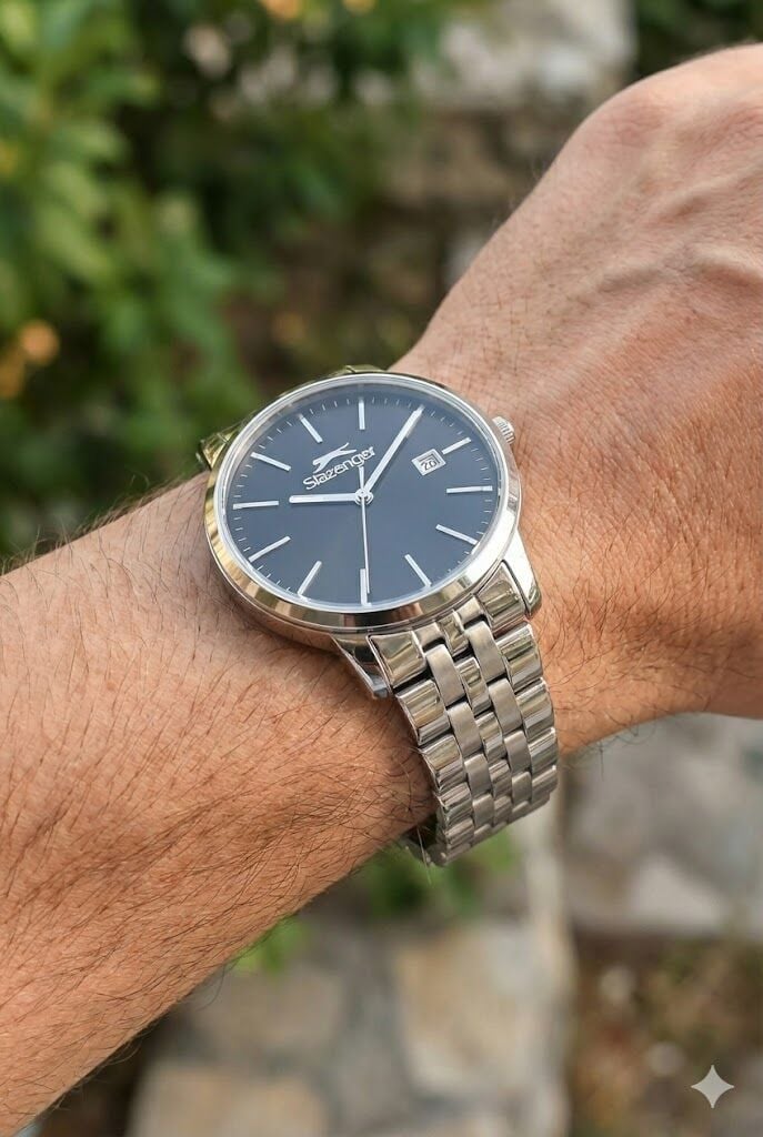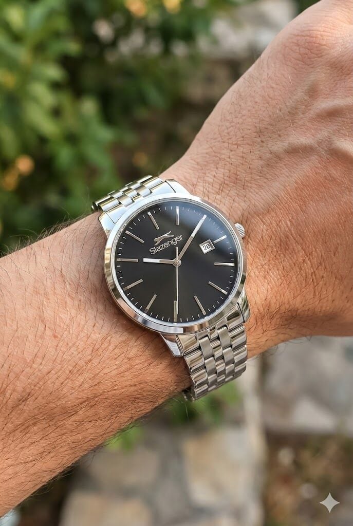 Slazenger erkek kol saati, 41 mm kasa çapı ve zamansız tasarımı ile güçlü ve sade bir stil sunar. Siyah kadranı ve silver çelik detayları ile klasik şıklığı modern çizgilerle buluşturur.