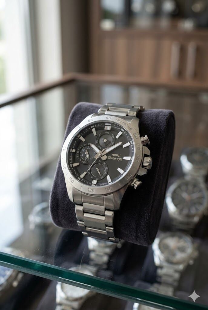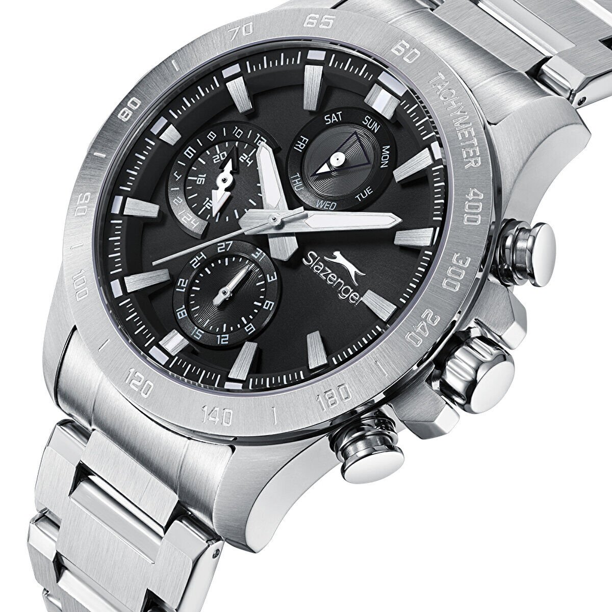 Slazenger Erkek Kol Saati | 44mm, Siyah Kadran, Multifonksiyon, Paslanmaz Çelik, 10ATM