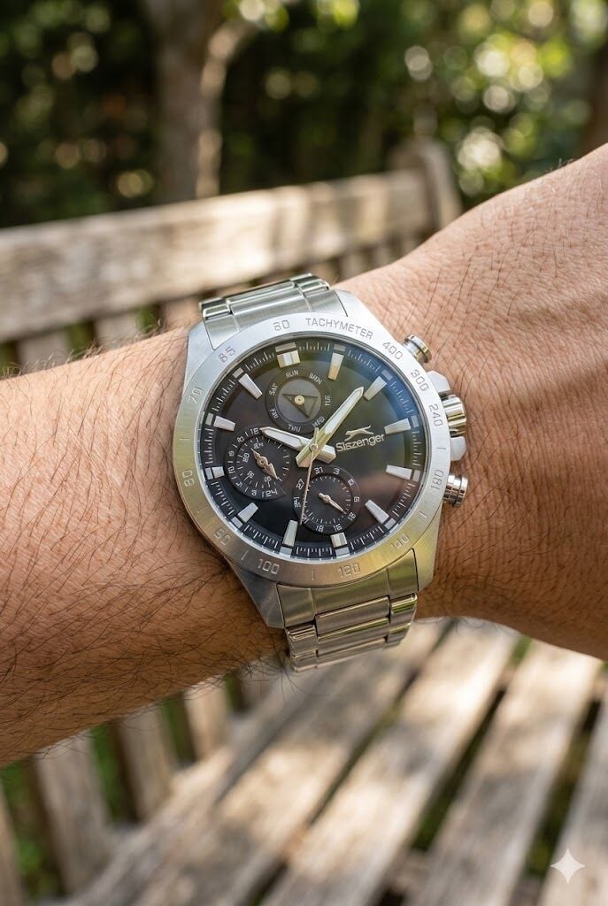 44 mm kasa çapı ile bilekte güçlü ve dikkat çekici bir duruş sunan Slazenger erkek kol saati, kalite, dayanıklılık ve şıklığı bir arada sunan ideal bir modeldir.