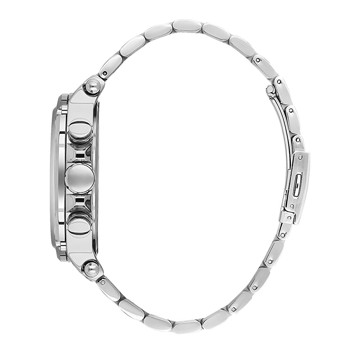 Gümüş renkli çelik kordon, spor ve klasik kombinlerle uyum sağlar. Sağlam kilit mekanizması sayesinde güvenli ve konforlu kullanım sunar.