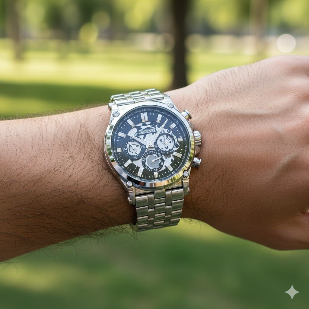 Slazenger Erkek Kol Saati – Çelik Kasa – Gümüş Çelik Kordon – Siyah Kadran – Kronograf Tasarım