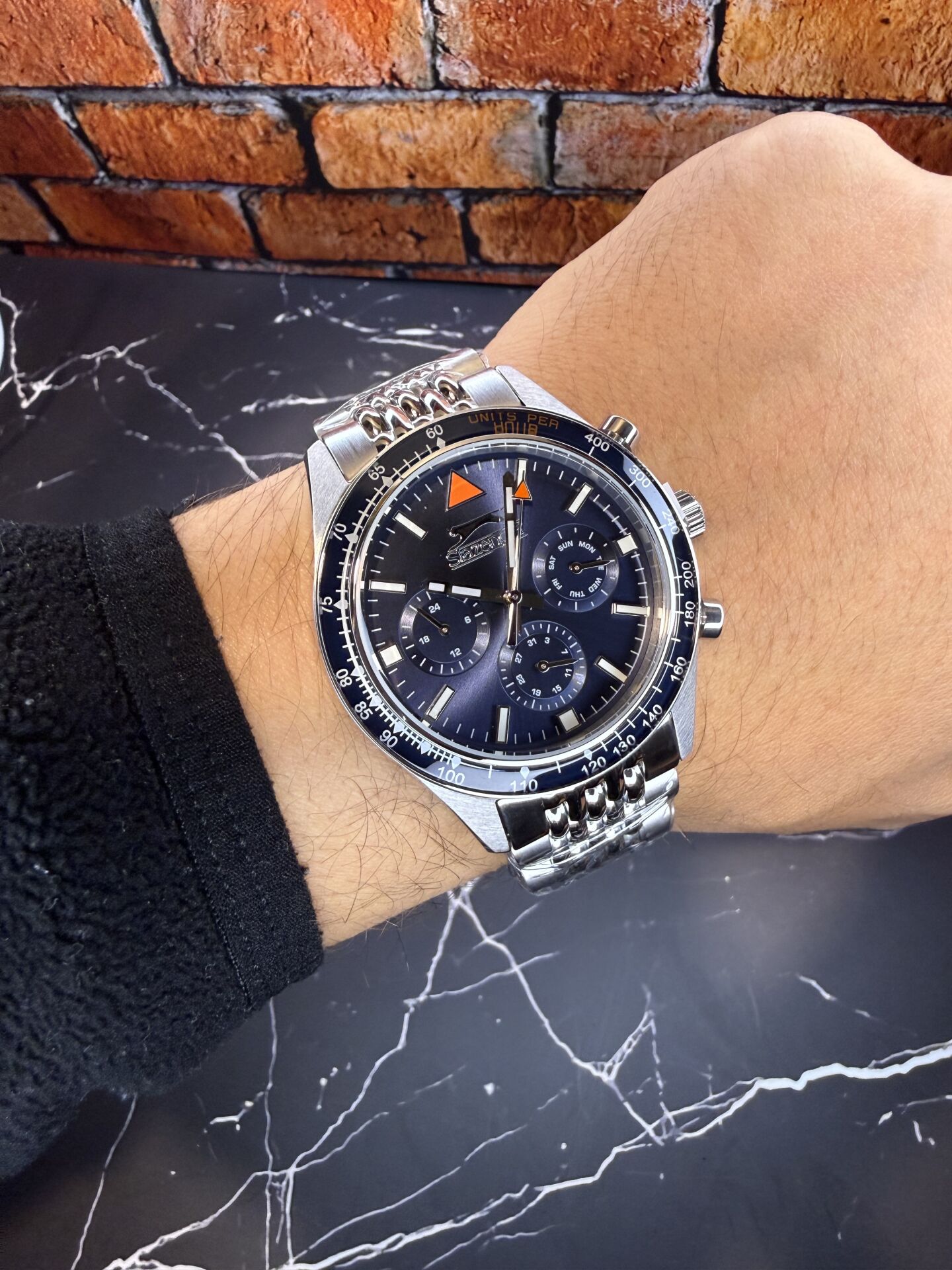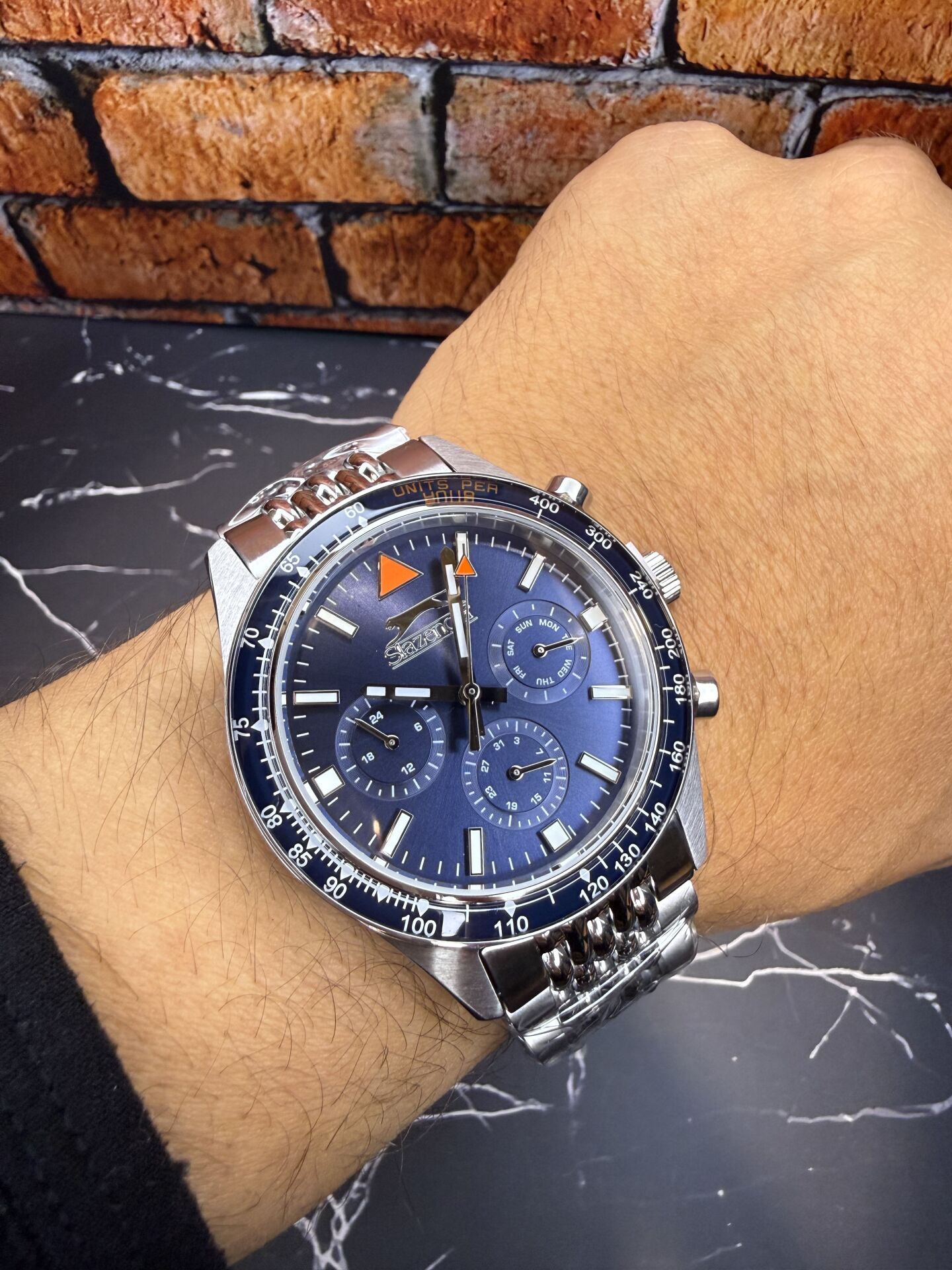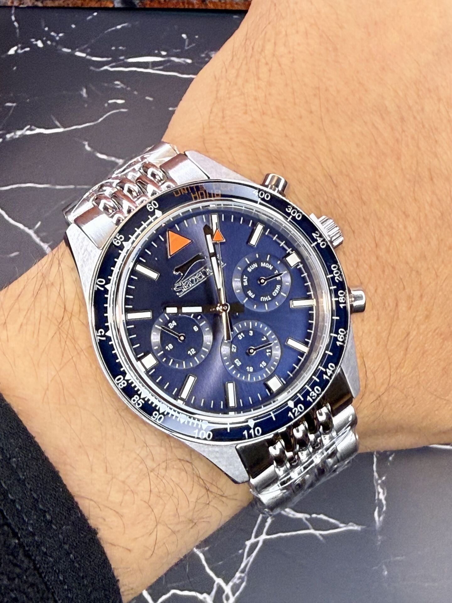 Slazenger Erkek Kol Saati – Koyu Mavi Kadran – Paslanmaz Çelik Kasa – Çelik Kordon – Kronograf