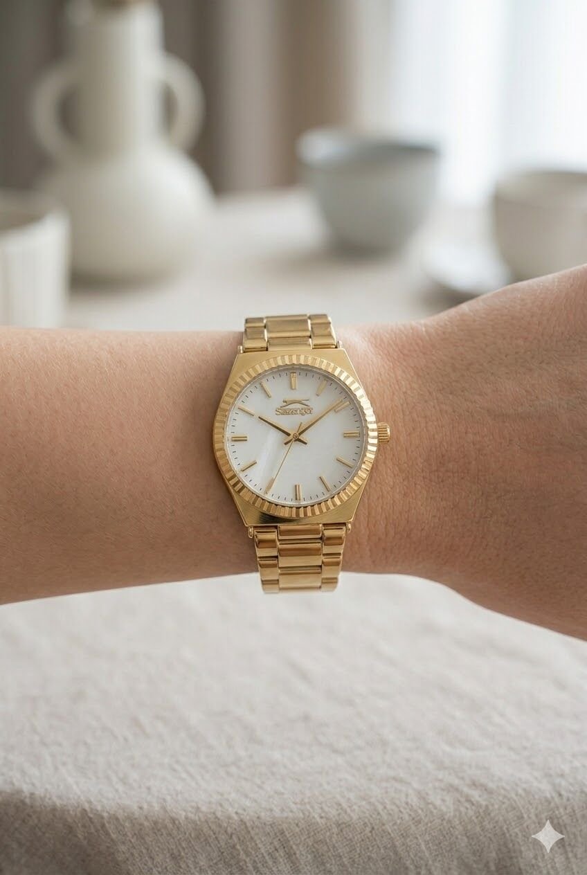 Slazenger kadın kol saati zarif ve şık tasarımıyla dikkat çeker. Tamamen gold tonlardan oluşan bu model, klasik şıklığı modern detaylarla birleştirerek göz alıcı bir stil sunar. Sade beyaz kadranı sayesinde okunabilirliği yüksek olan bu saat, Slazenger kadın kol saati arayanlar için hem günlük kullanımda hem de özel günlerde tercih edilebilecek ideal bir seçenektir.