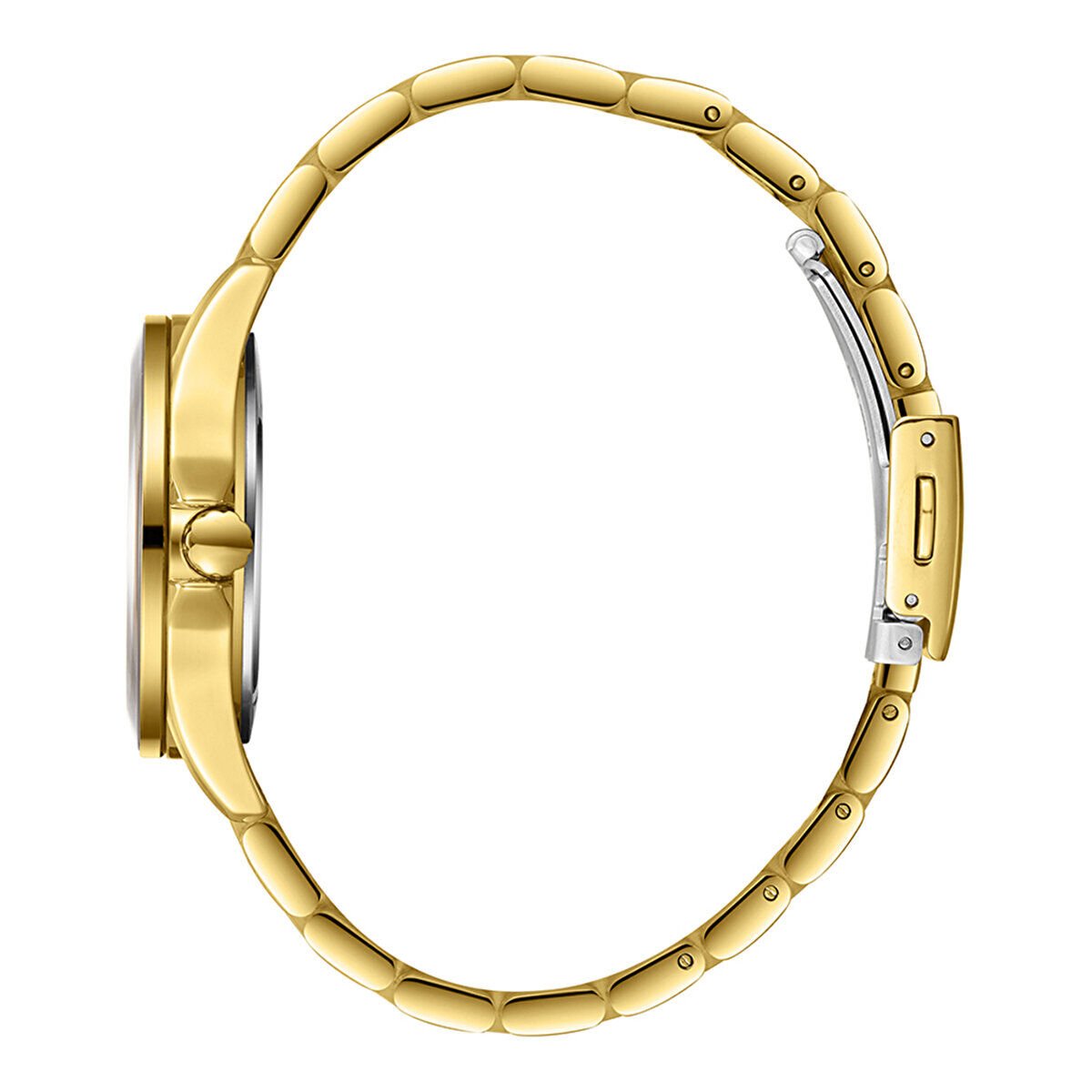 Altın renk çelik kordon; sağlam yapısı ve konforlu kullanımıyla uzun ömürlü bir tercih sunar. Klasik bilezik formu, saatin şıklığını tamamlar.