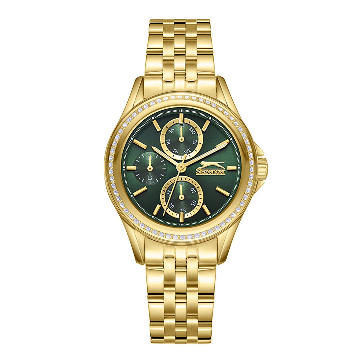 Slazenger Kadın 34 mm Çelik Kasa Altın Renk Çelik Kordon Koyu Yeşil Kadran Multifonksiyon Kol Saati
