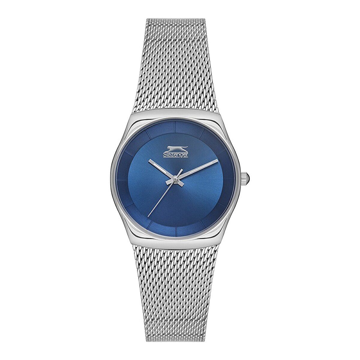 Slazenger kadın kol saati; 34 mm paslanmaz çelik kasası, gri hasır çelik kordonu ve mavi kadran tasarımıyla sade ve modern bir şıklık sunar. İnce yapısı sayesinde bilekte hafif ve konforlu bir kullanım sağlarken, minimalist çizgileriyle günlük kombinlere kolayca uyum sağlar.