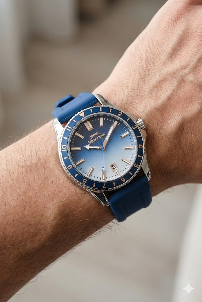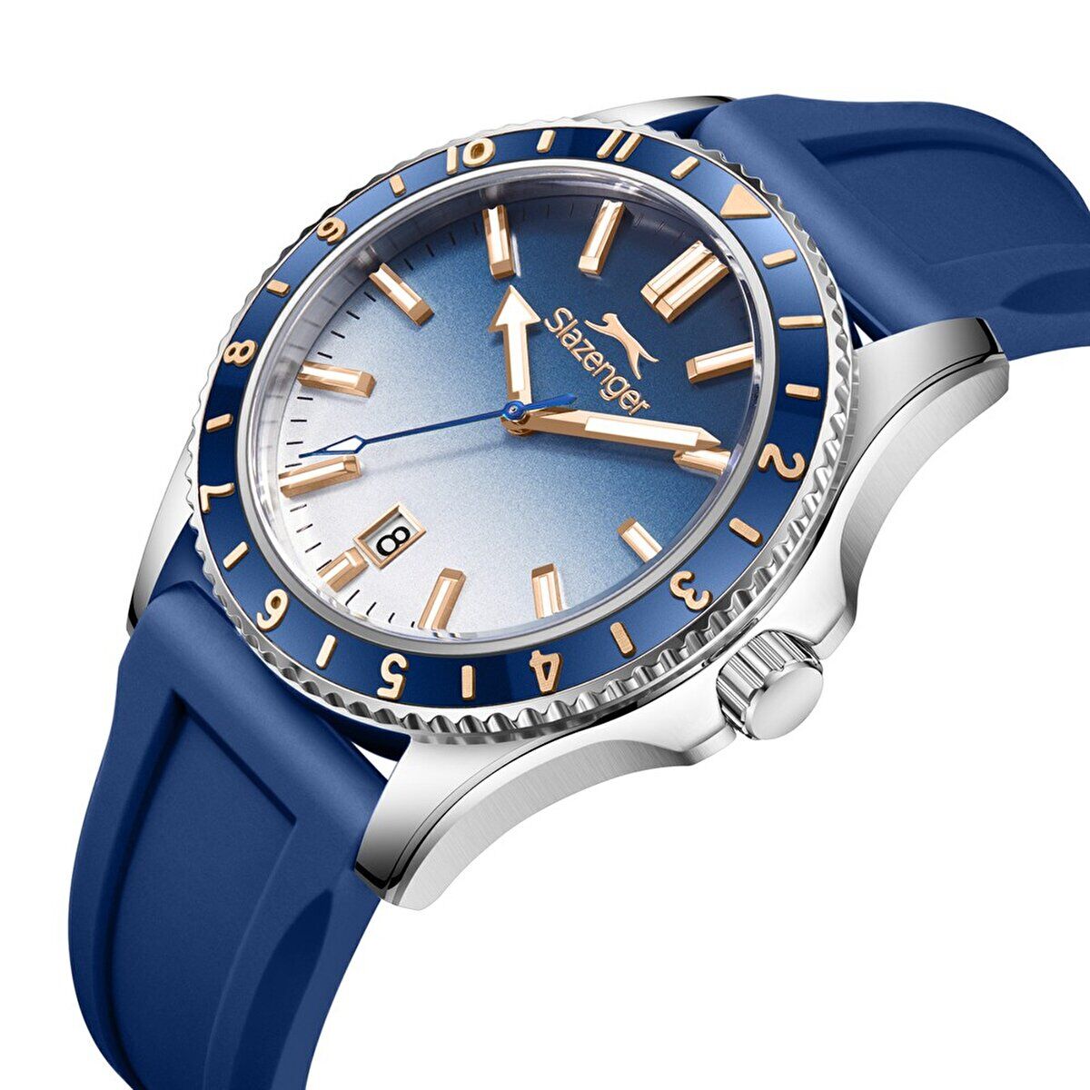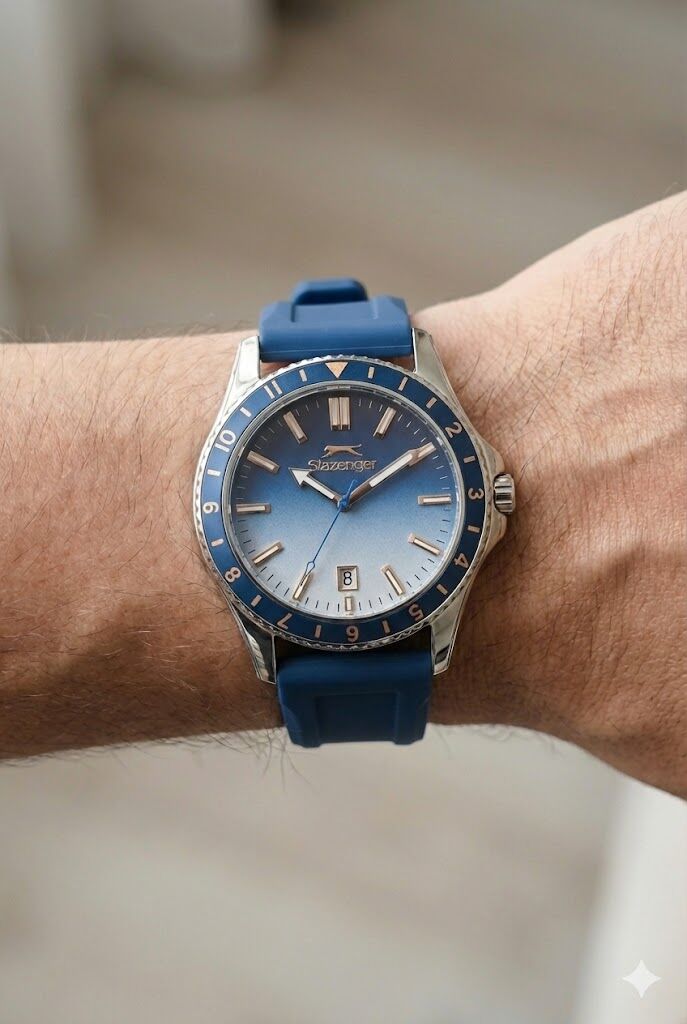 Slazenger erkek kol saati, sportif tasarımı ve modern renk geçişli mavi kadranı ile dinamik bir stil sunar. 42 mm kasa çapı güçlü bir görünüm sağlarken, mavi silikon kordon yapısı konforlu ve hafif bir kullanım sunar.