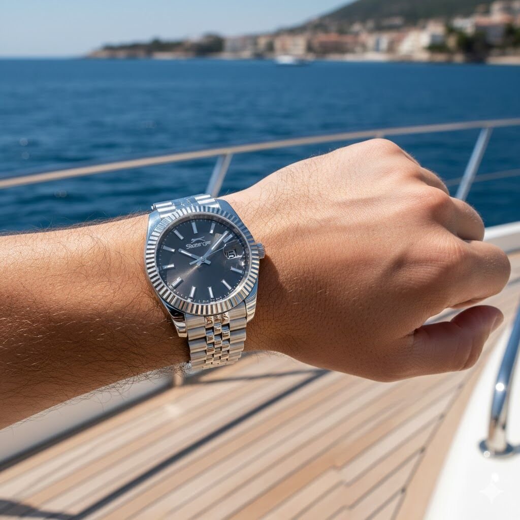Kurşun gri kadran, sade ve prestijli bir duruş sunarken Rolex tasarım çizgileri saate modern ve güçlü bir karakter kazandırır. İnce indeksler ve net kadran yerleşimi sayesinde yüksek okunabilirlik sağlar.
